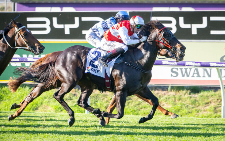 The Steve Wolfe trained Rope Them In proved too strong in a driving finish to the Group 3 Roma Cup at Ascot, reeling in the previously unbeaten Smooth Chino to claim a confidence building win on his way to his Grand Final in the $5 million Quokka at the same track on April 18.